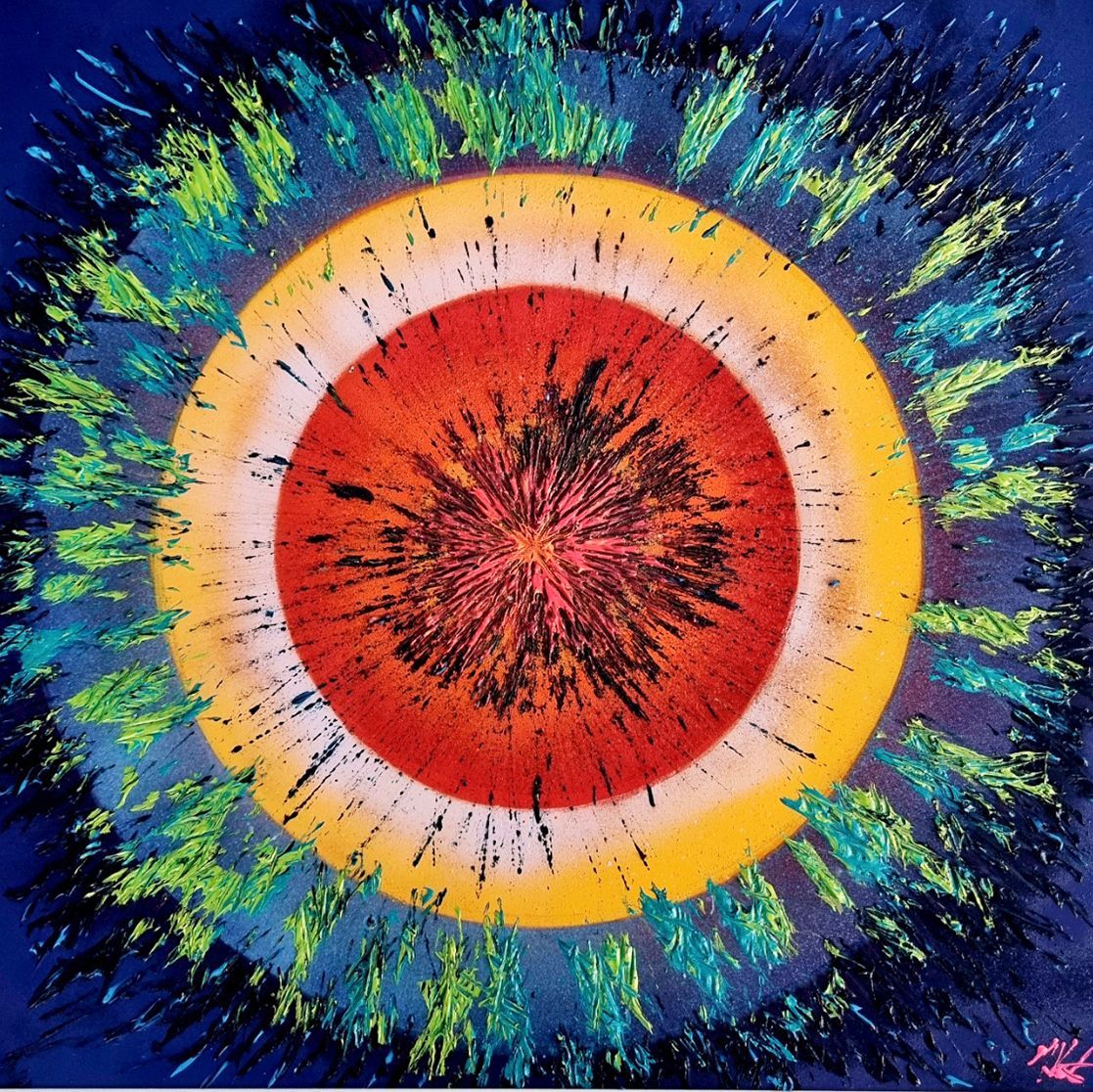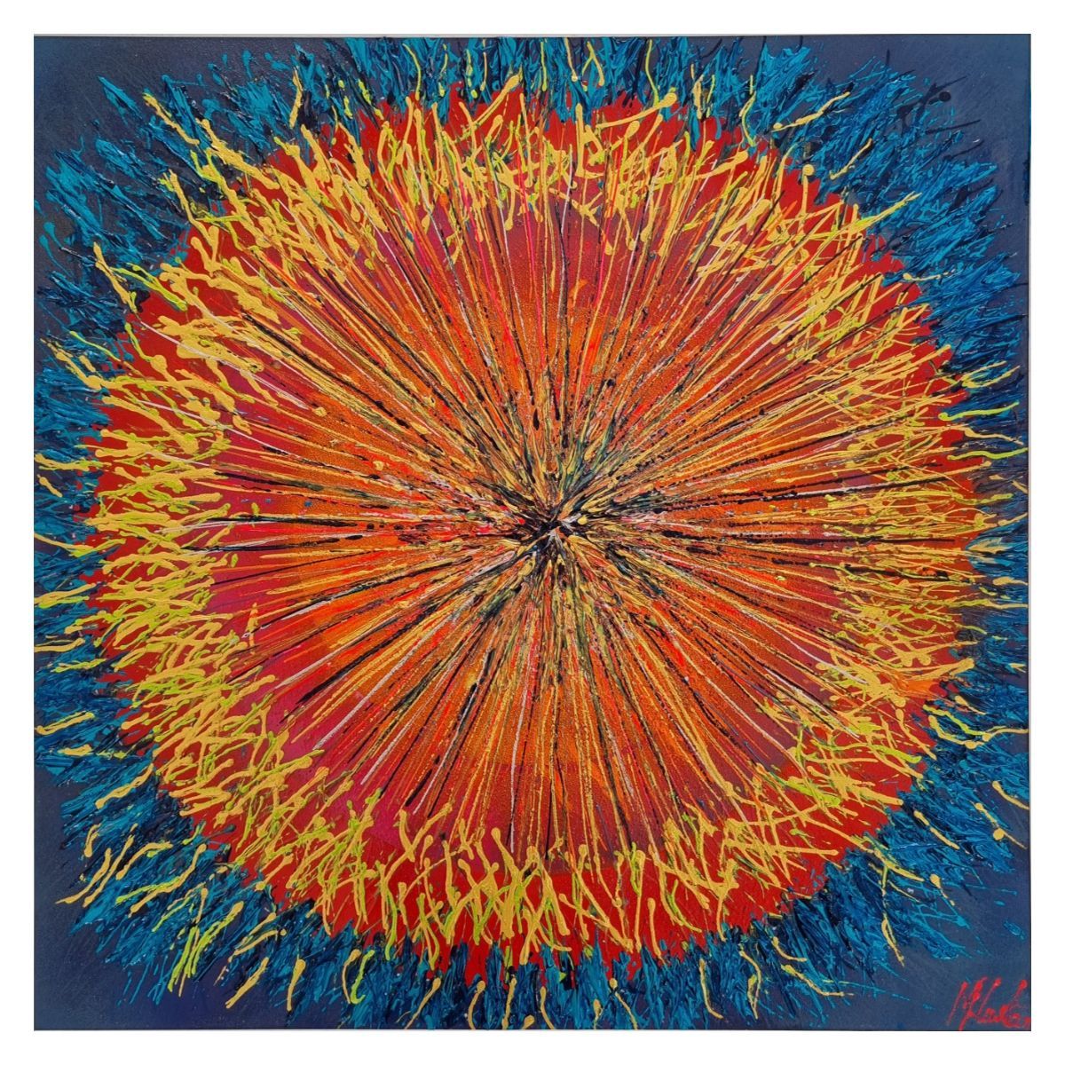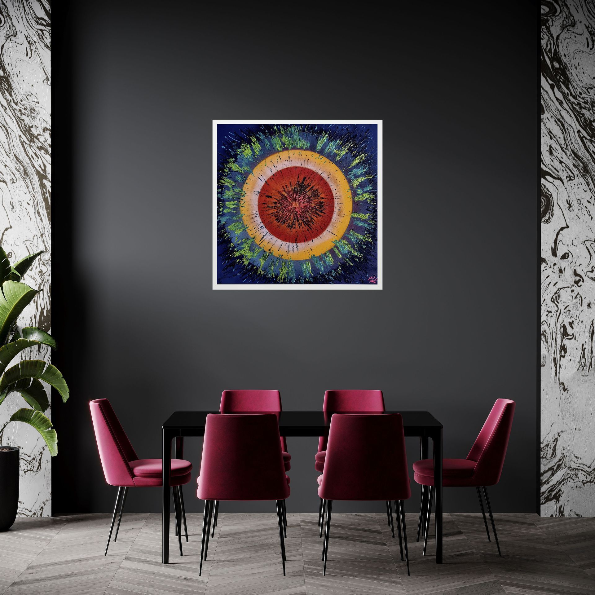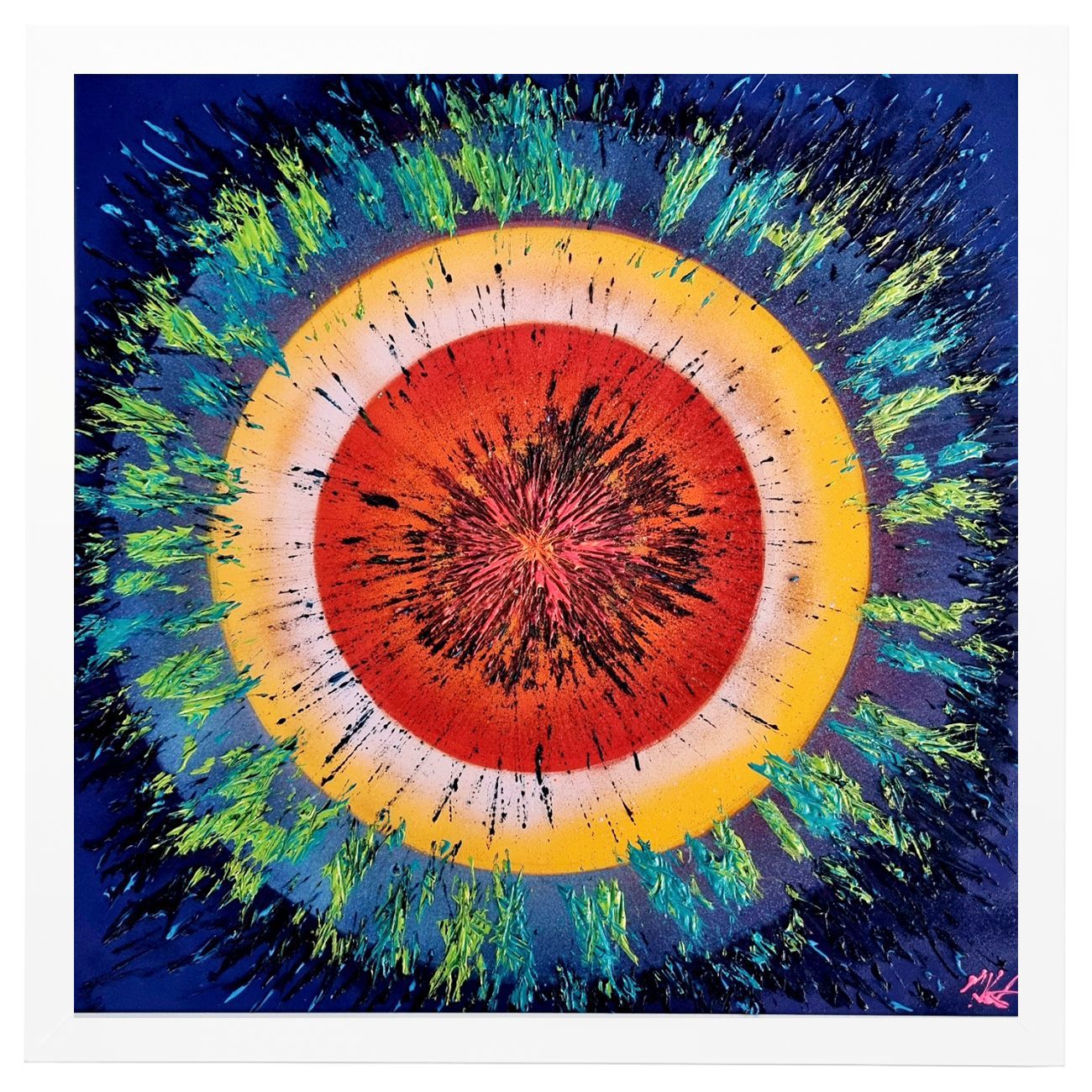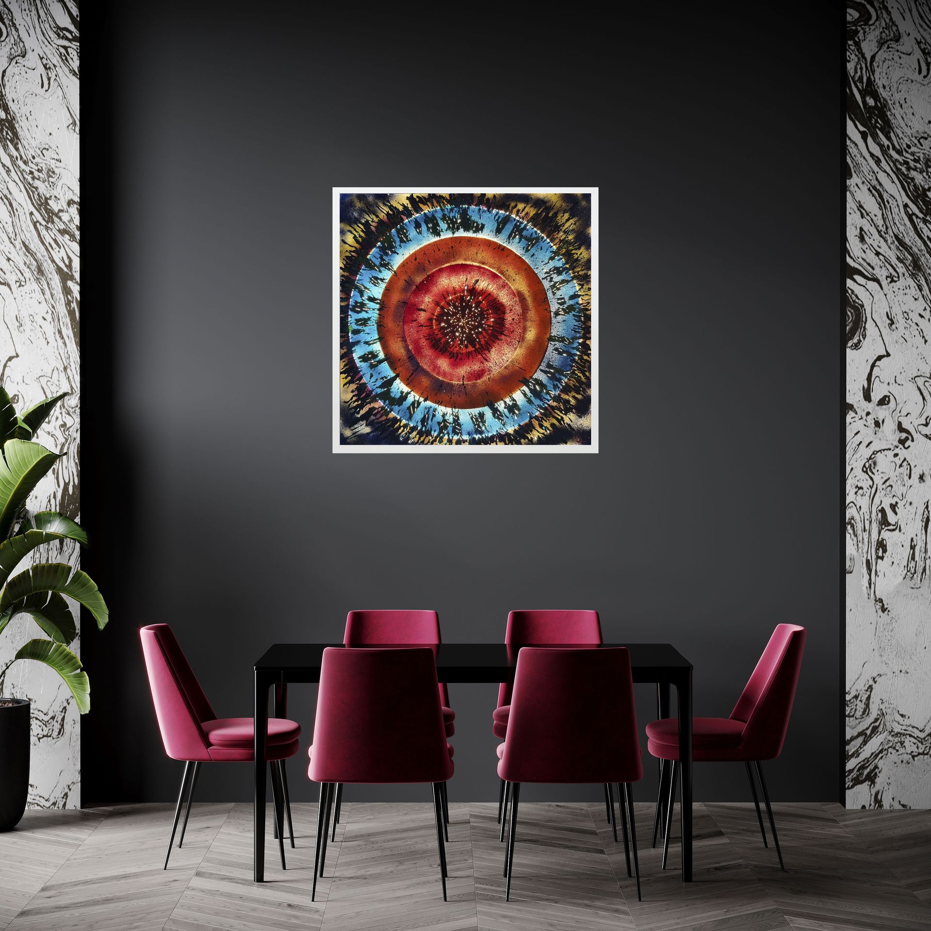 Aztec is a singular art piece that uses a light panel to illuminate the artwork, deceptive as it seems, this is the same piece of art, the 'on' and 'off' modes show different colours and designs resulting in a very interesting and captivating creation.