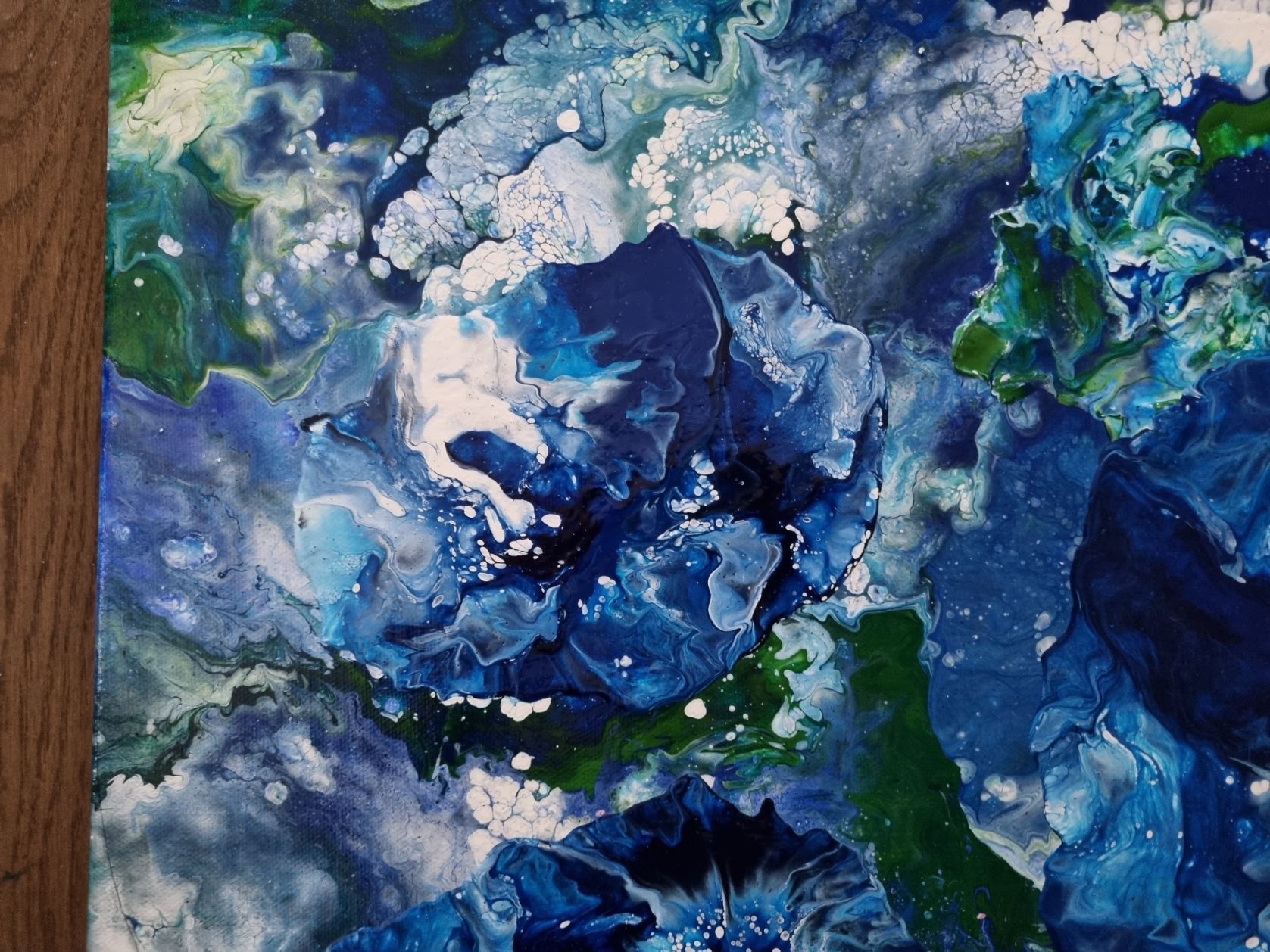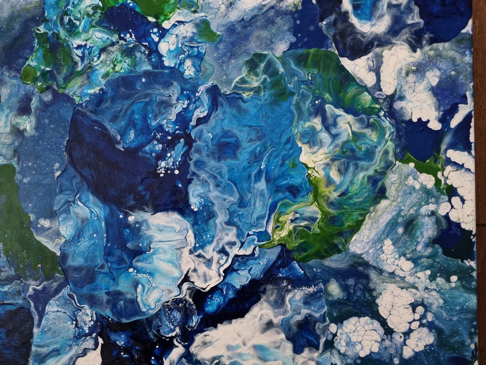 A blue white and green with gloss varnish finish