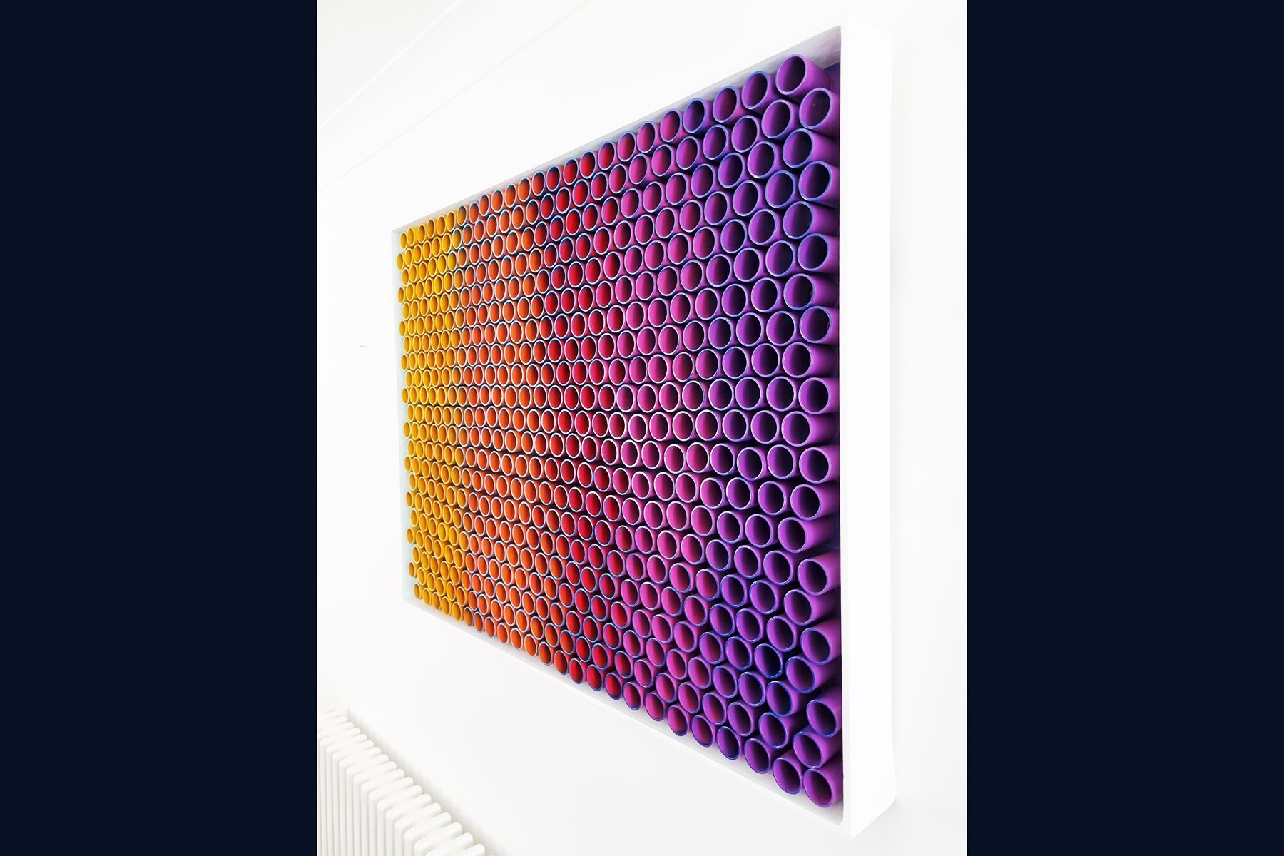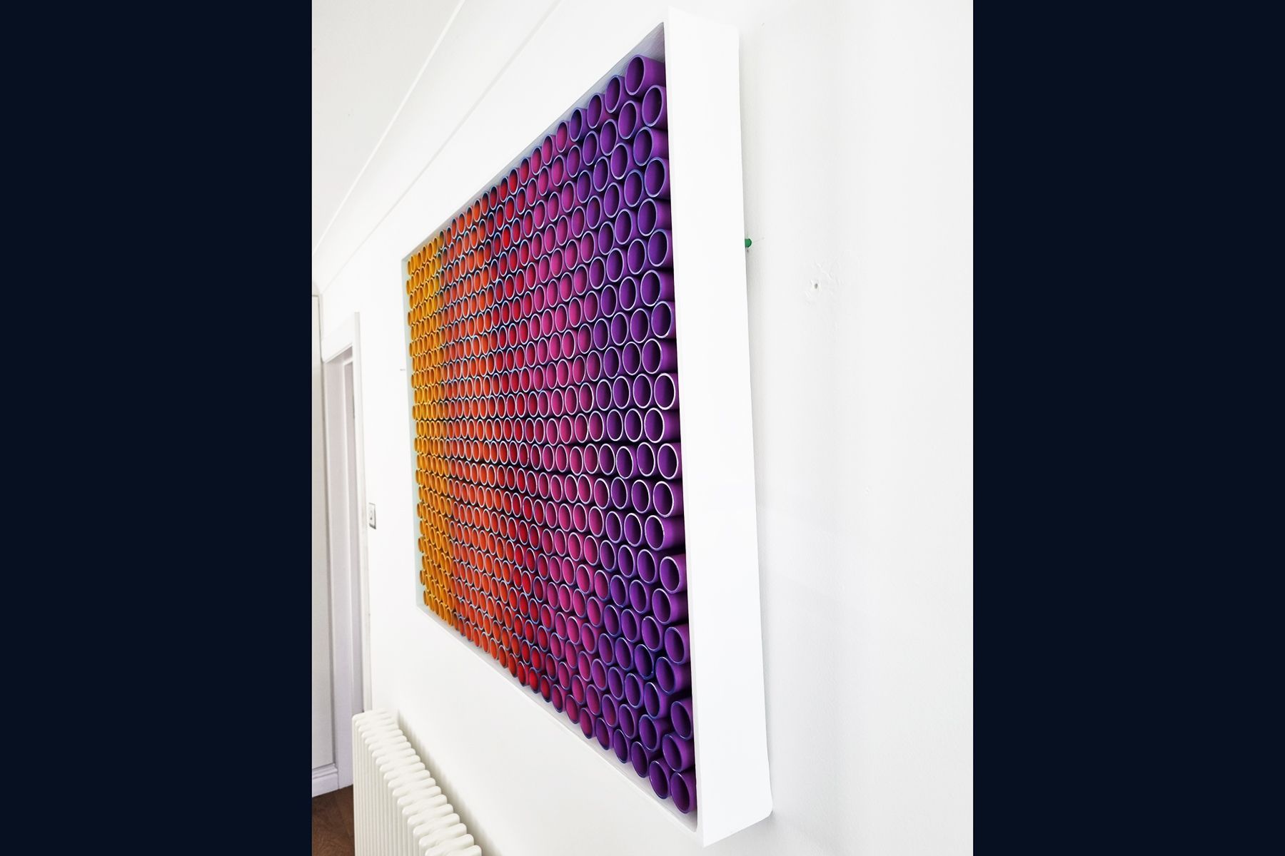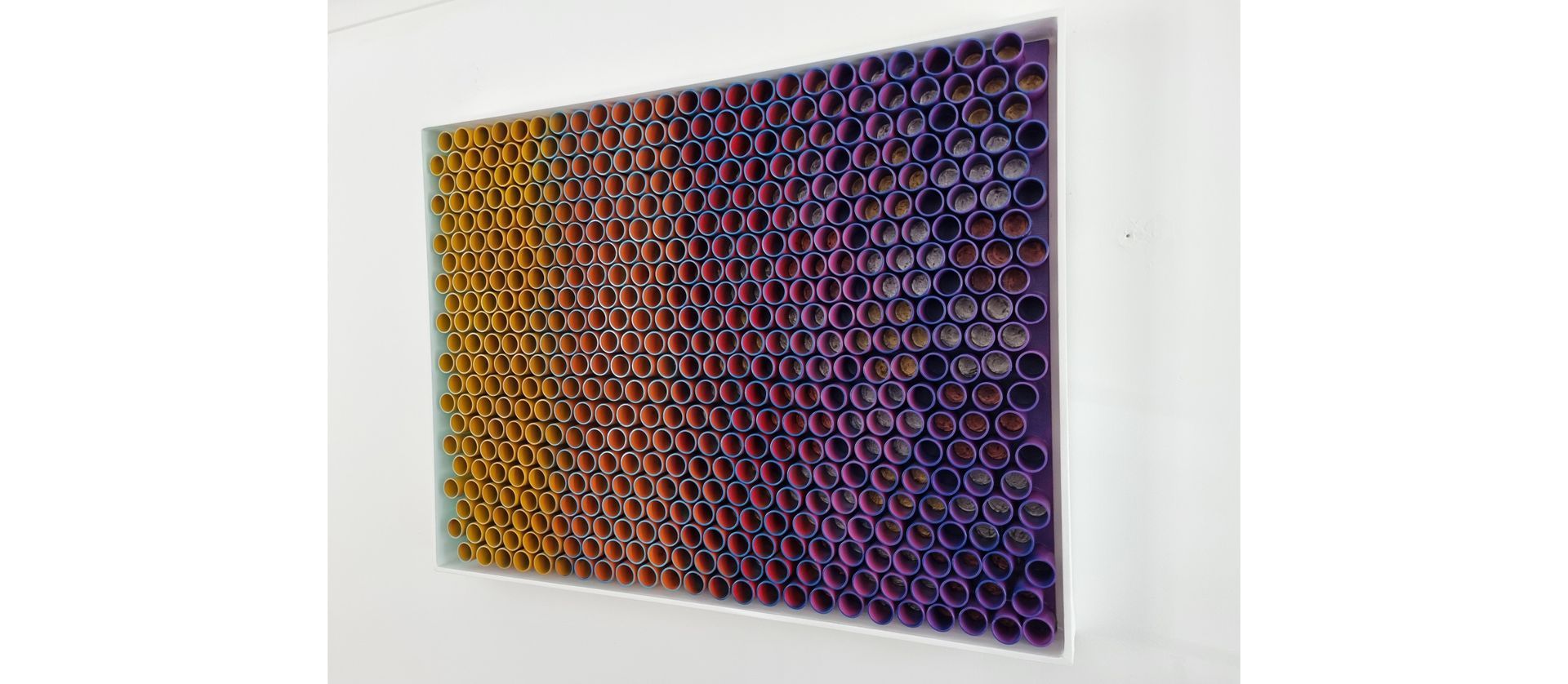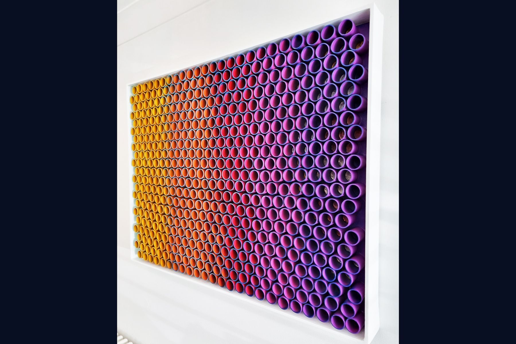 3D artwork changes colour as the viewer walks past.