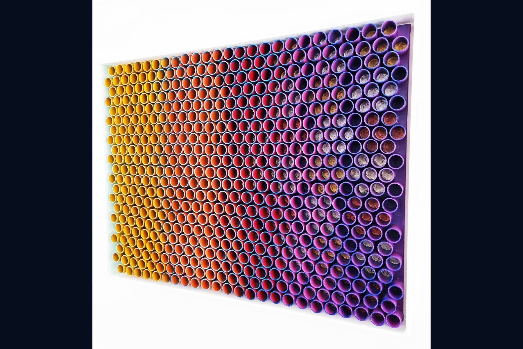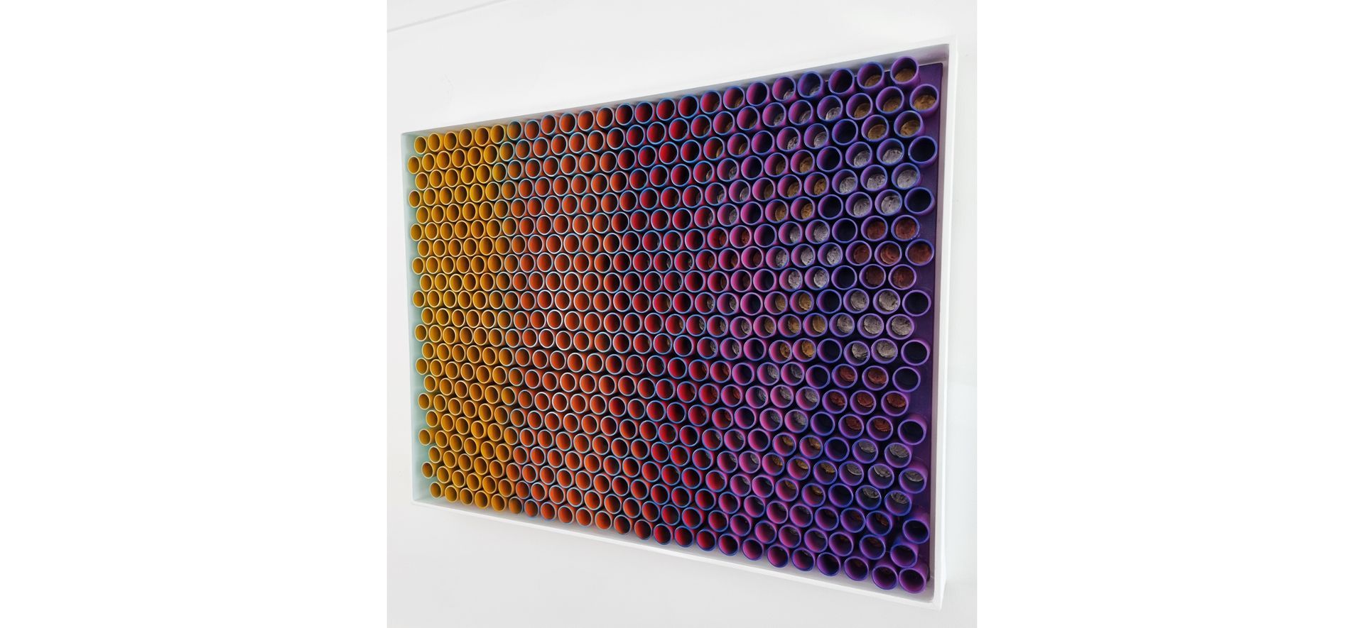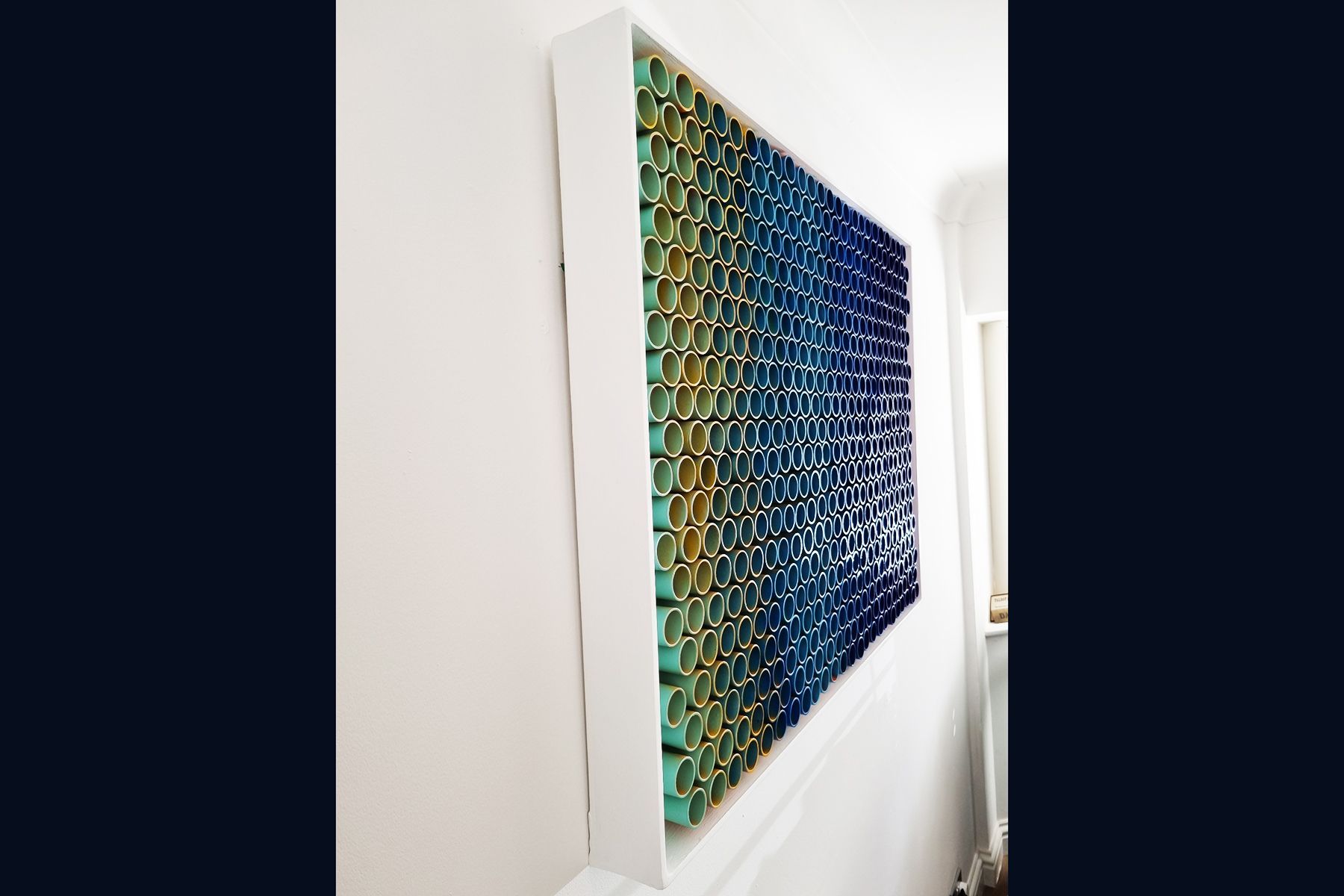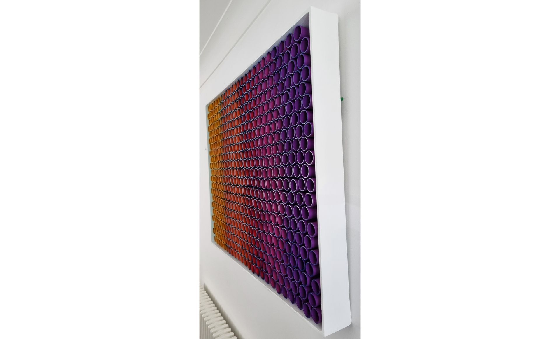 3D artwork changes colour as the viewer walks past.