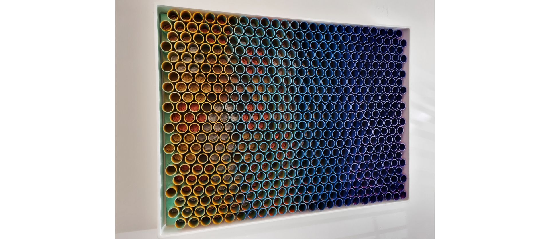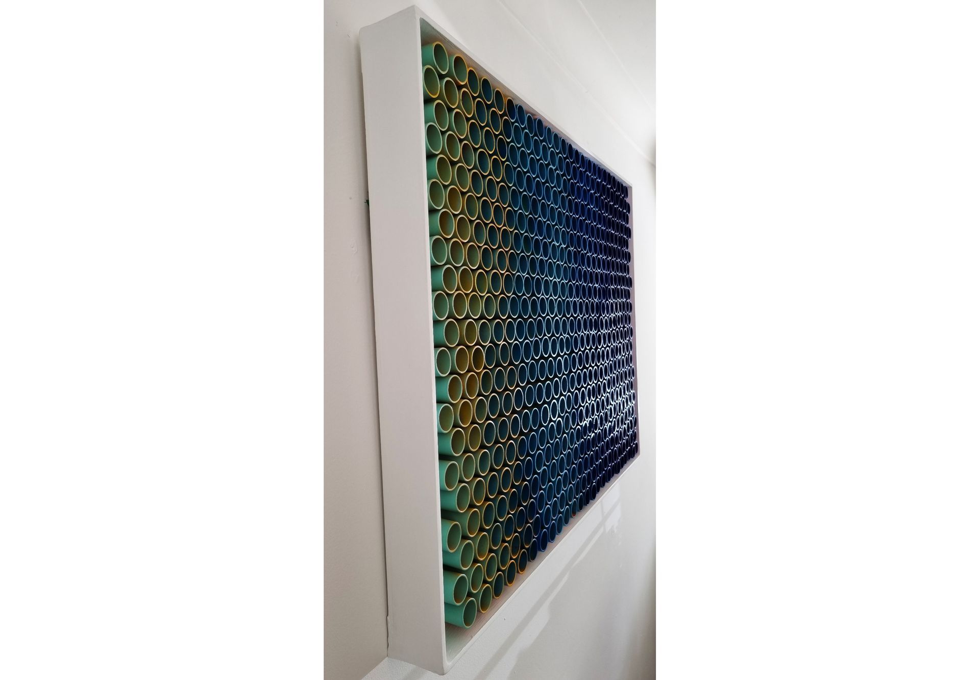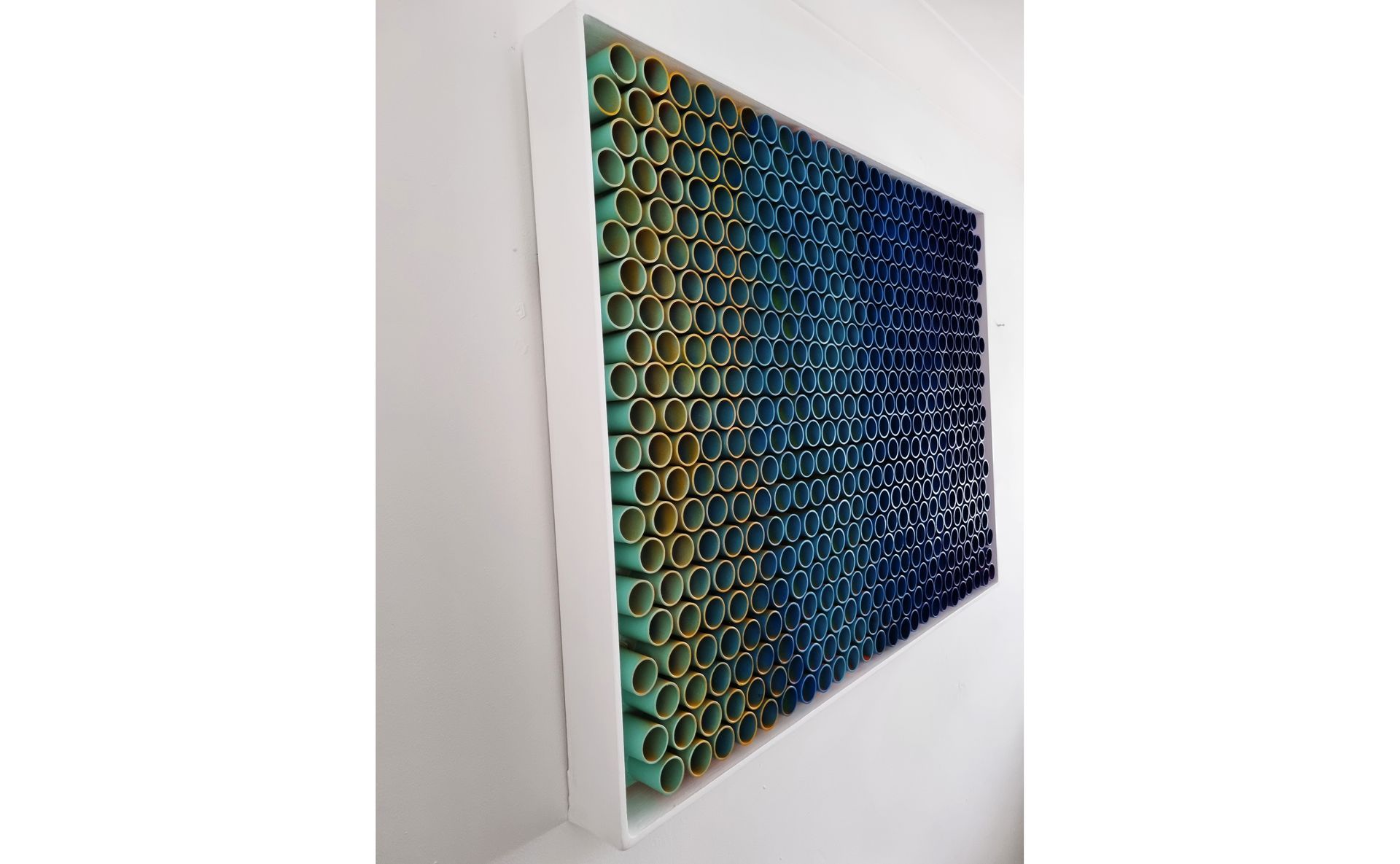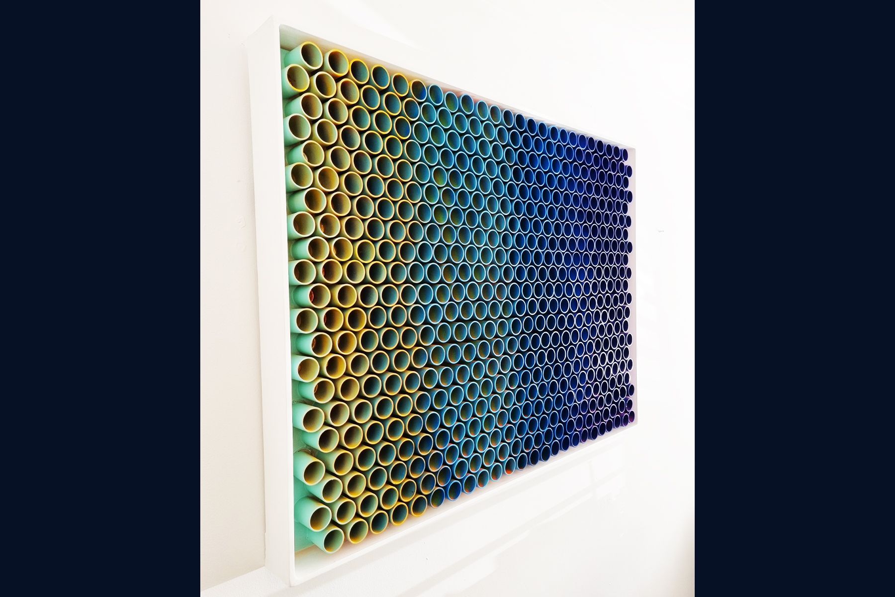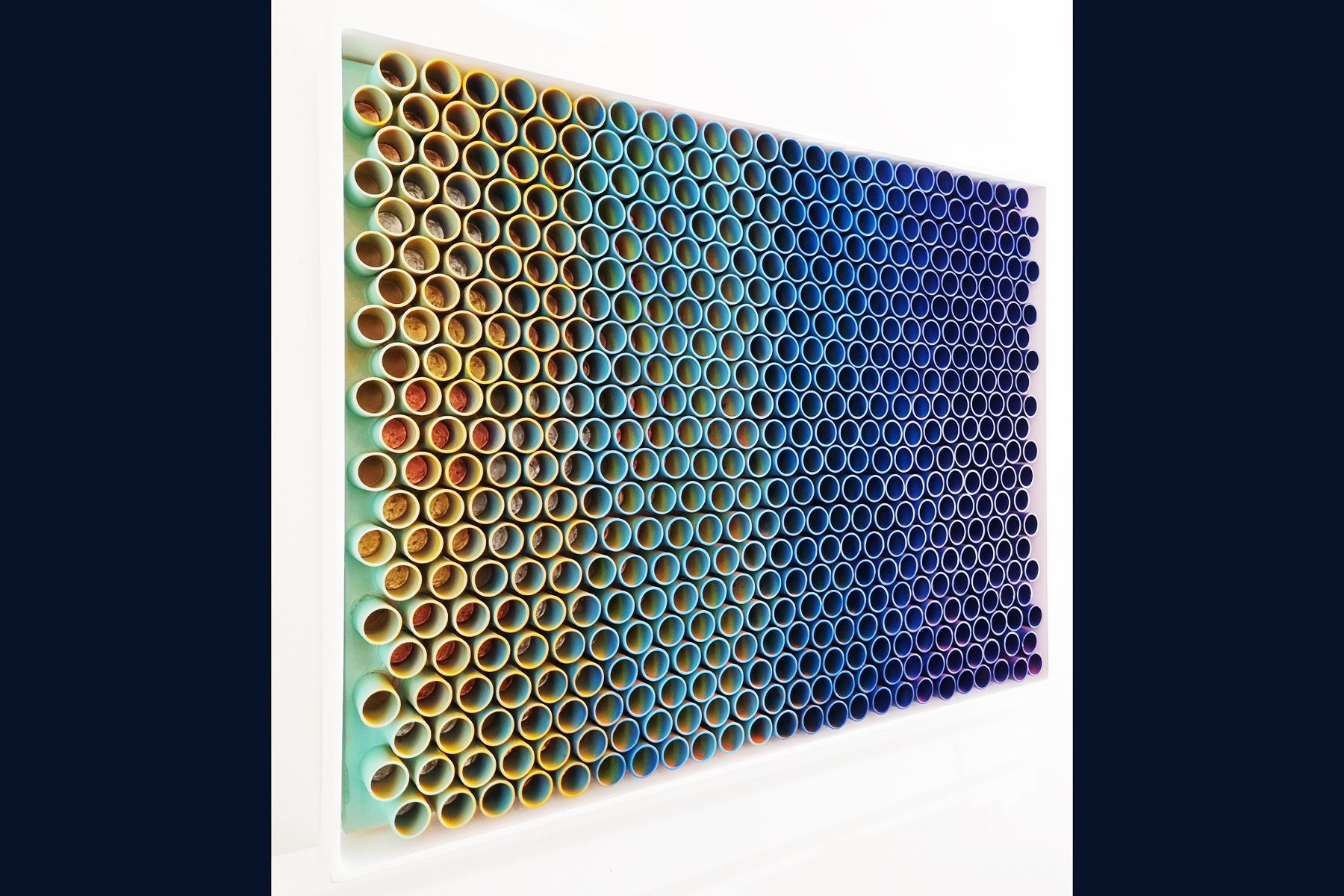 3D artwork changes colour as the viewer walks past.