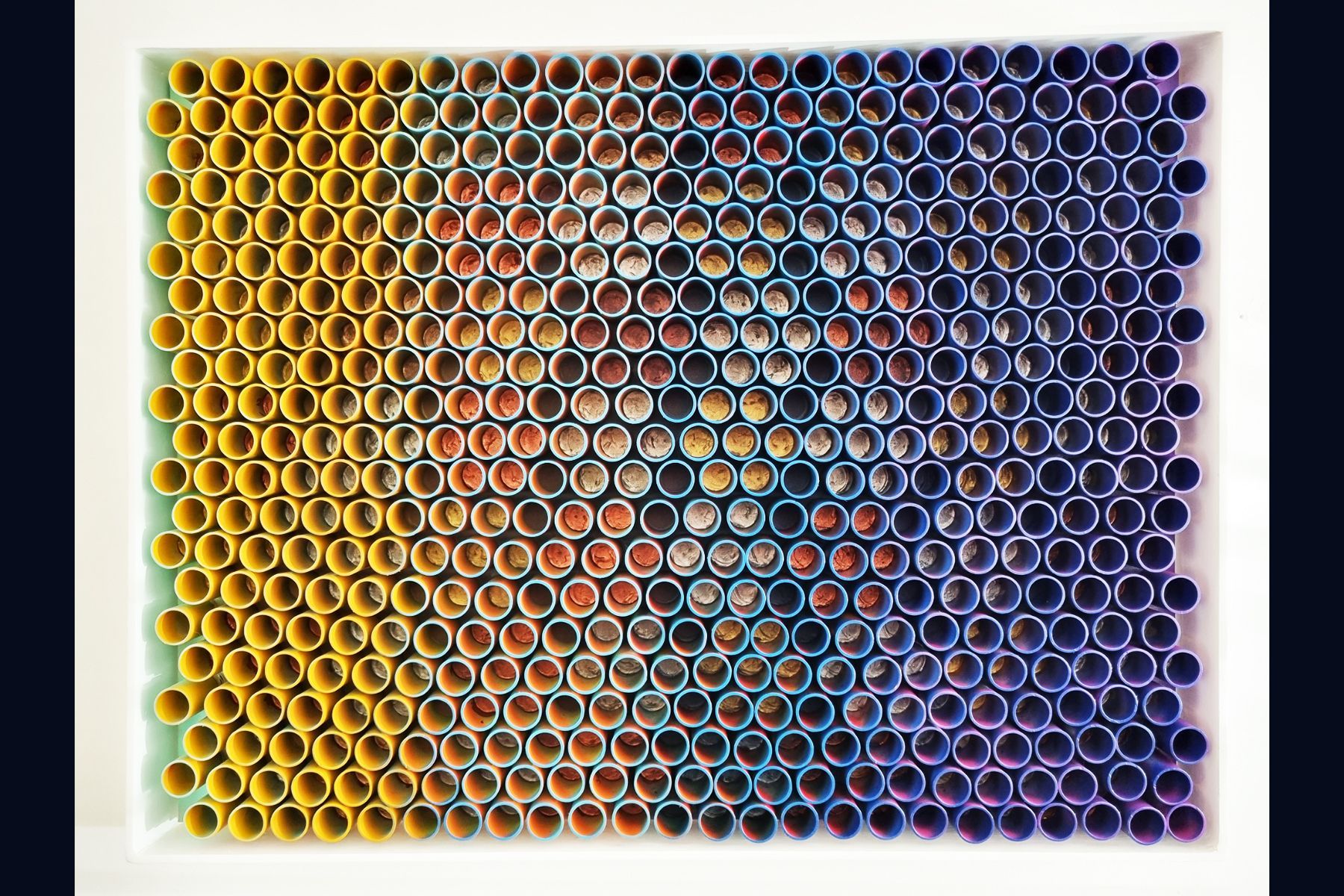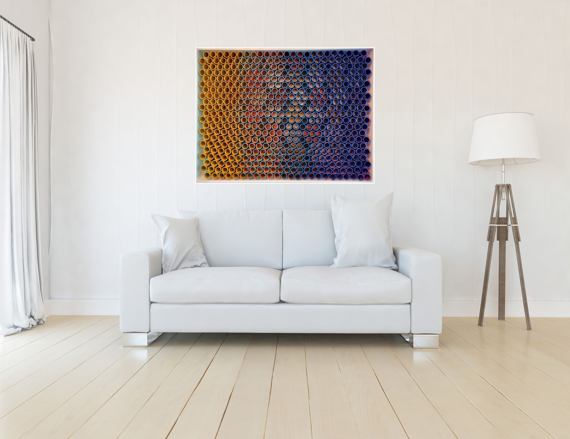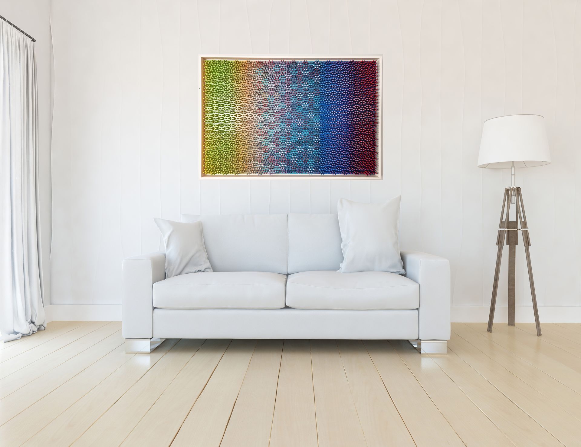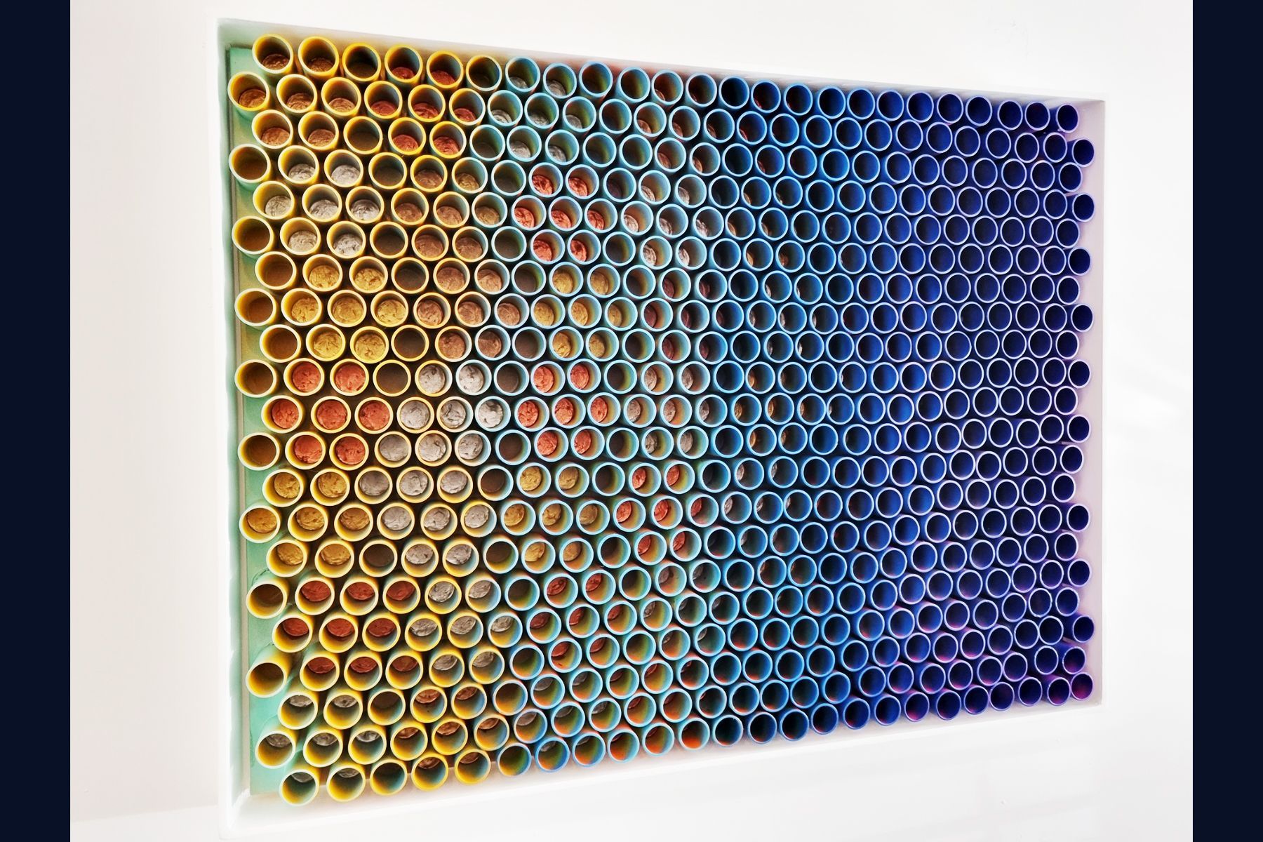 3D artwork changes colour as the viewer walks past.