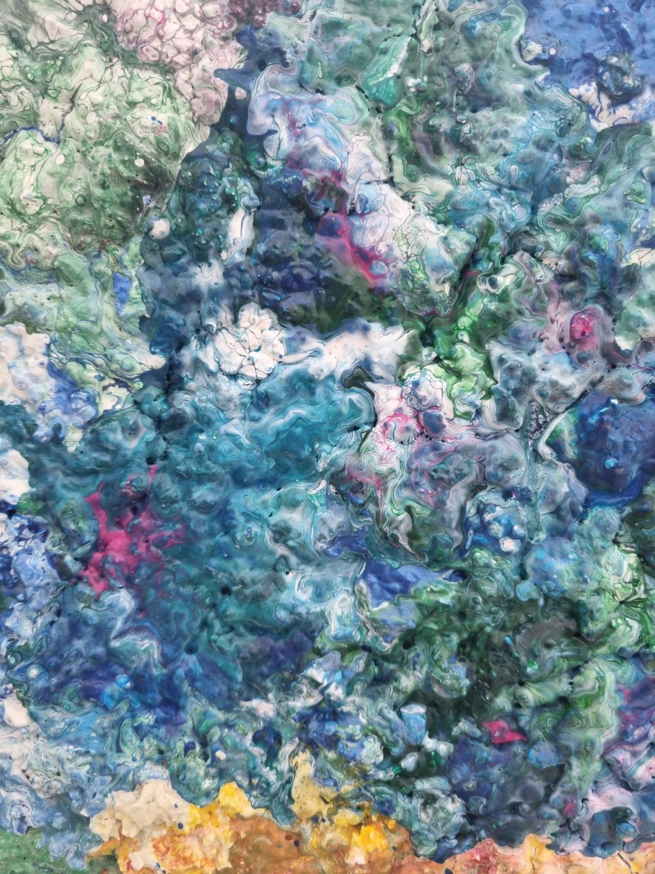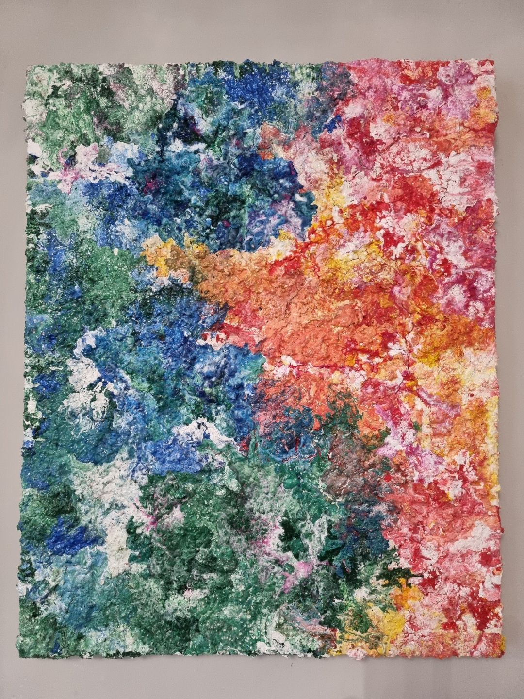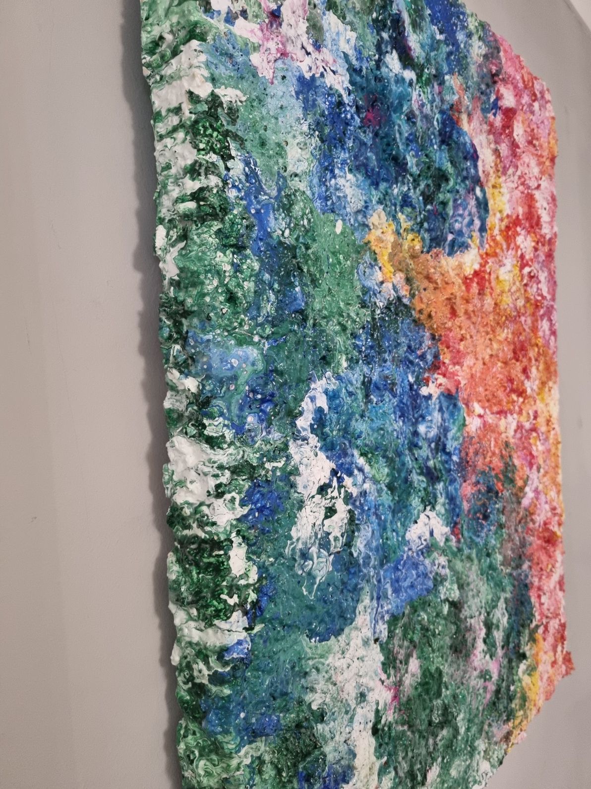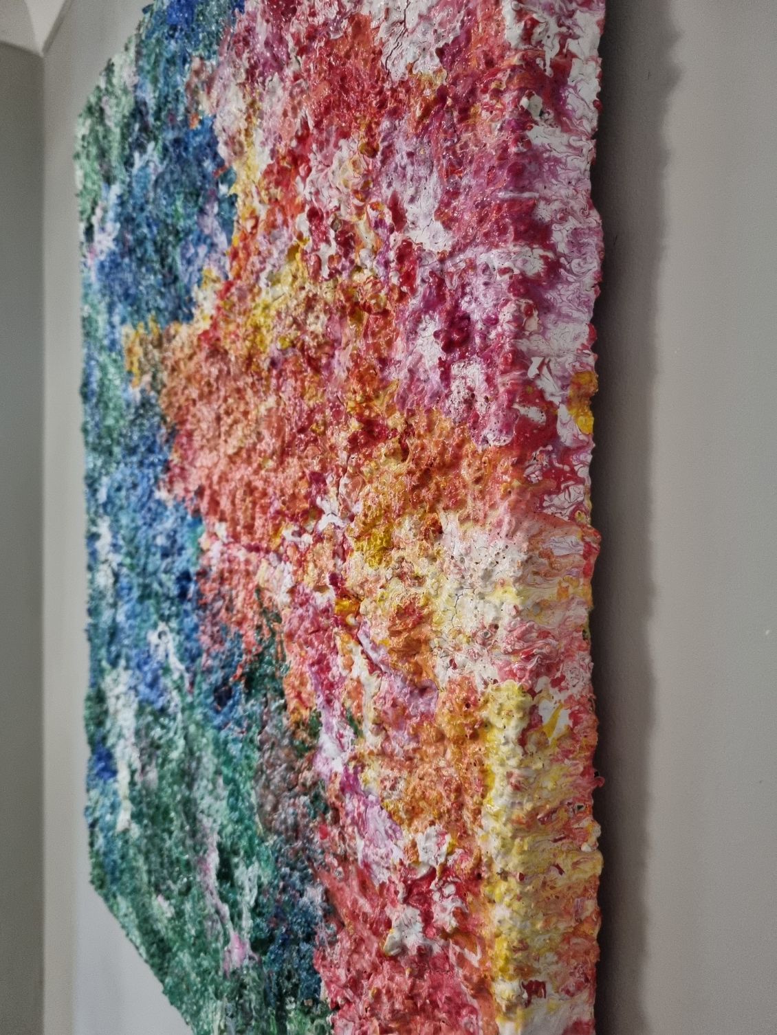 Size: 61cm * 77cm Contoured base layer with acrylic artwork and clear gloss finish . Unframed.