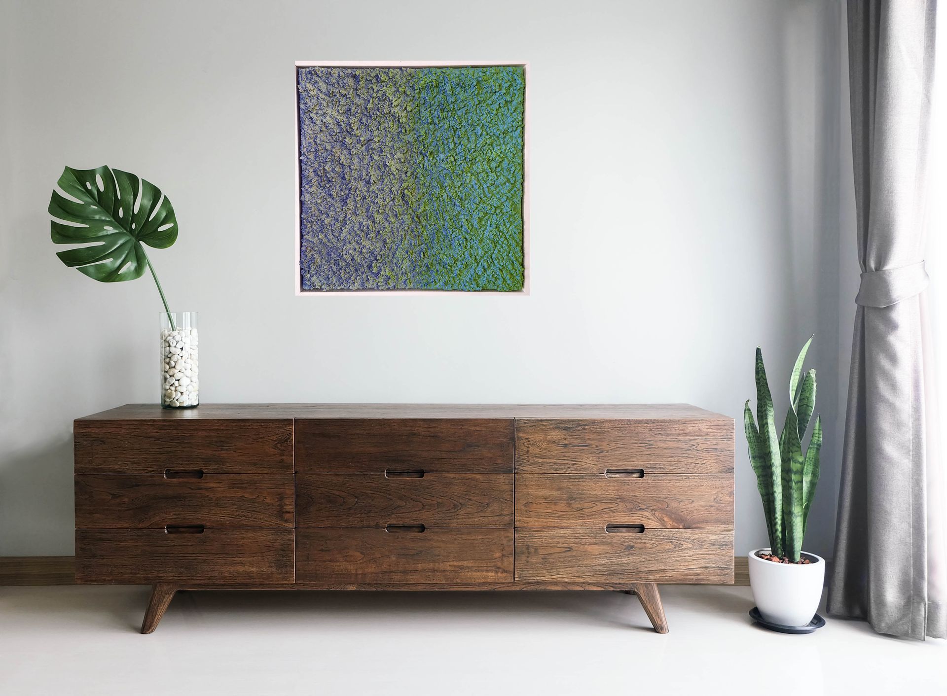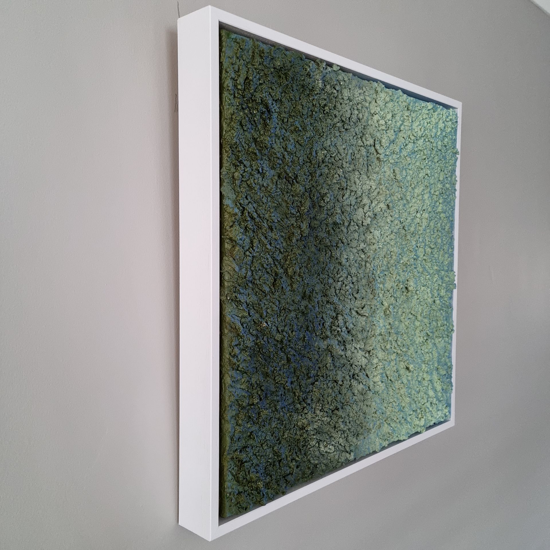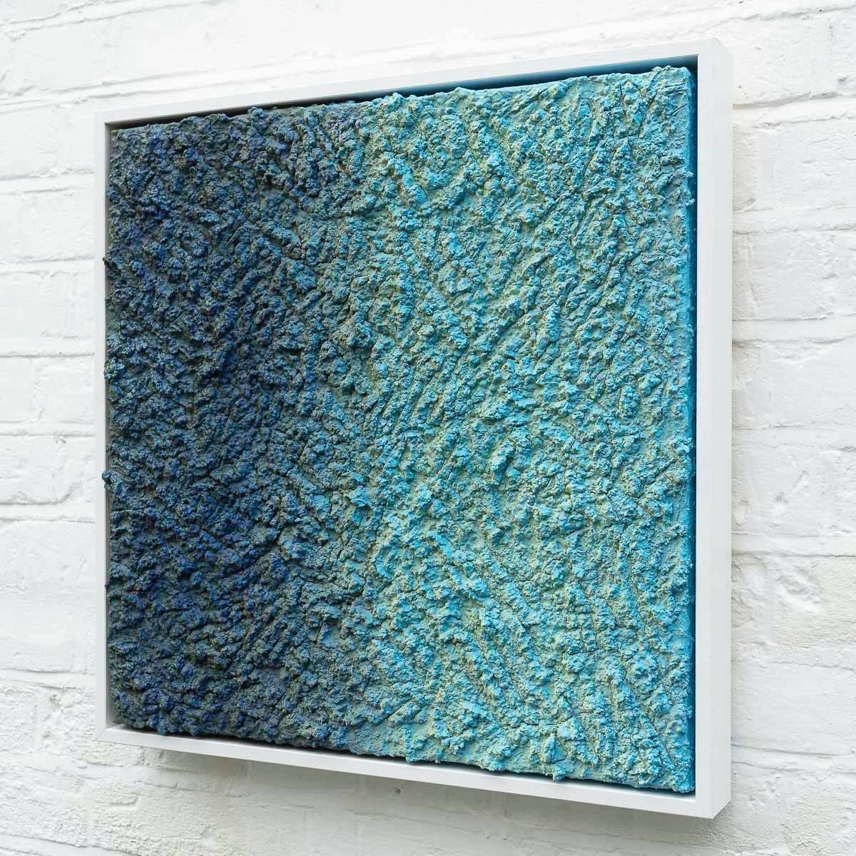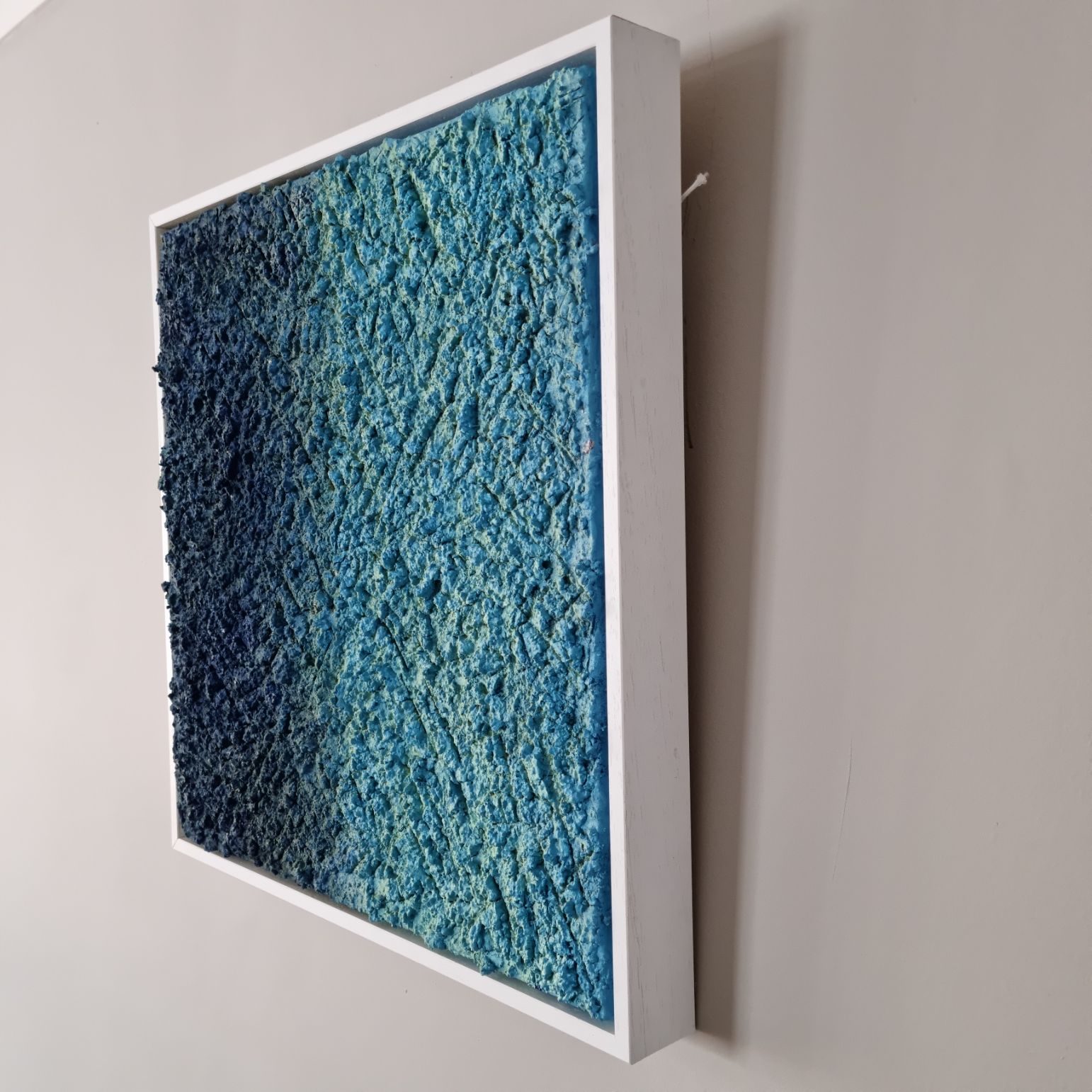Discover Elements 2 'Earth And Sky', an original mixed media artwork by artist Mitchel Lawton. This stunning piece has a textured surface and vibrant blue hues evoking the serene yet dynamic interplay between earth and sky, Embrace the allure of abstract art with this artwork, and let its tranquil yet powerful presence transform your space.