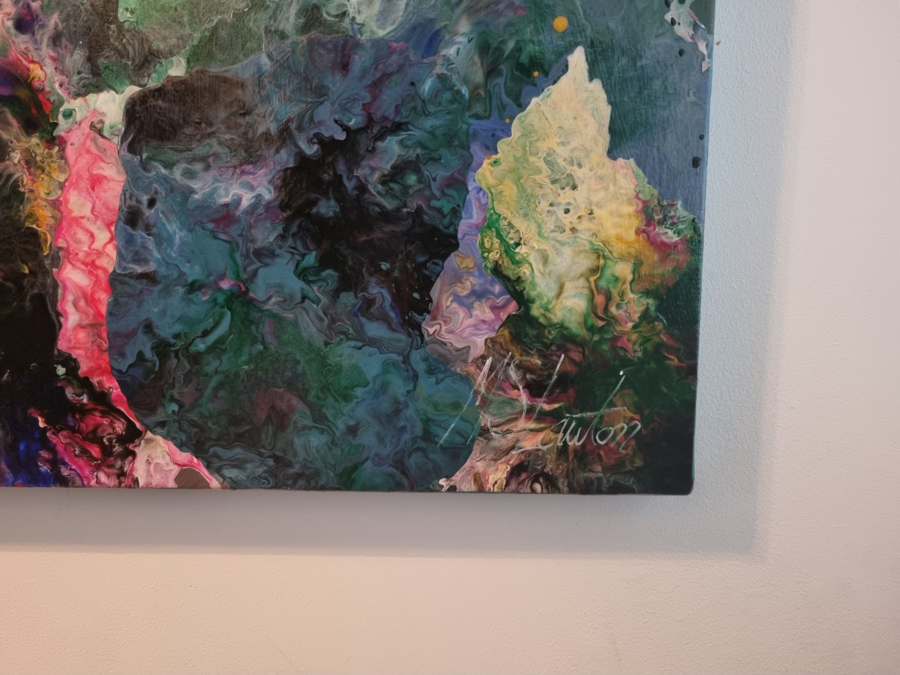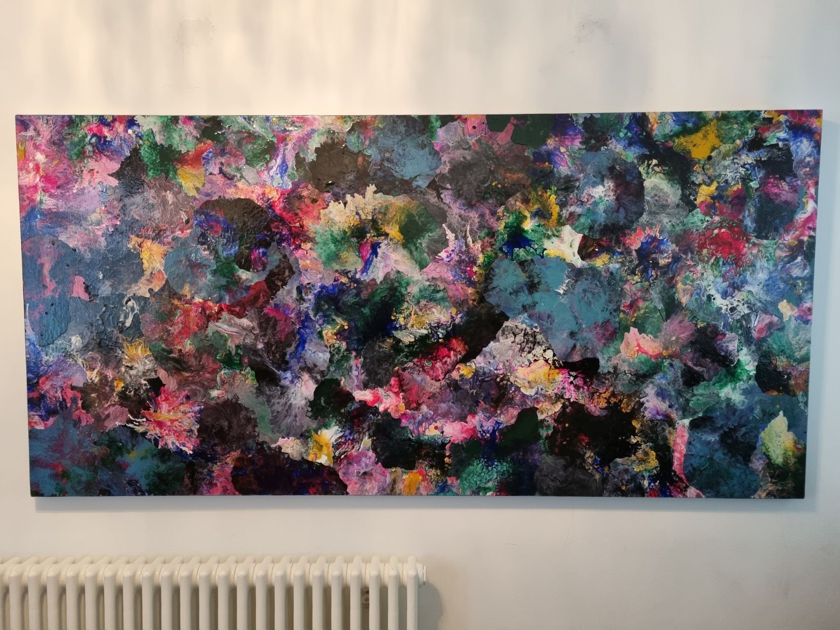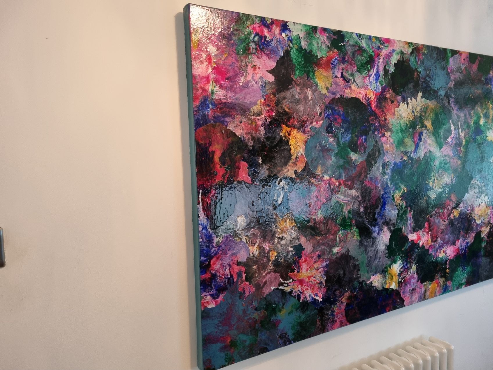 Mixed acrylic with clear gloss varnish finish. Reef is inspired by the Great Barrier Reef with its multi coloured corals and sea creatures swimming around. Although I haven’t had the good fortune to experienced this wonder of the natural world personally, in my mind this piece provides a tiny feel for what I imagine seeing such a landmark site beholds.