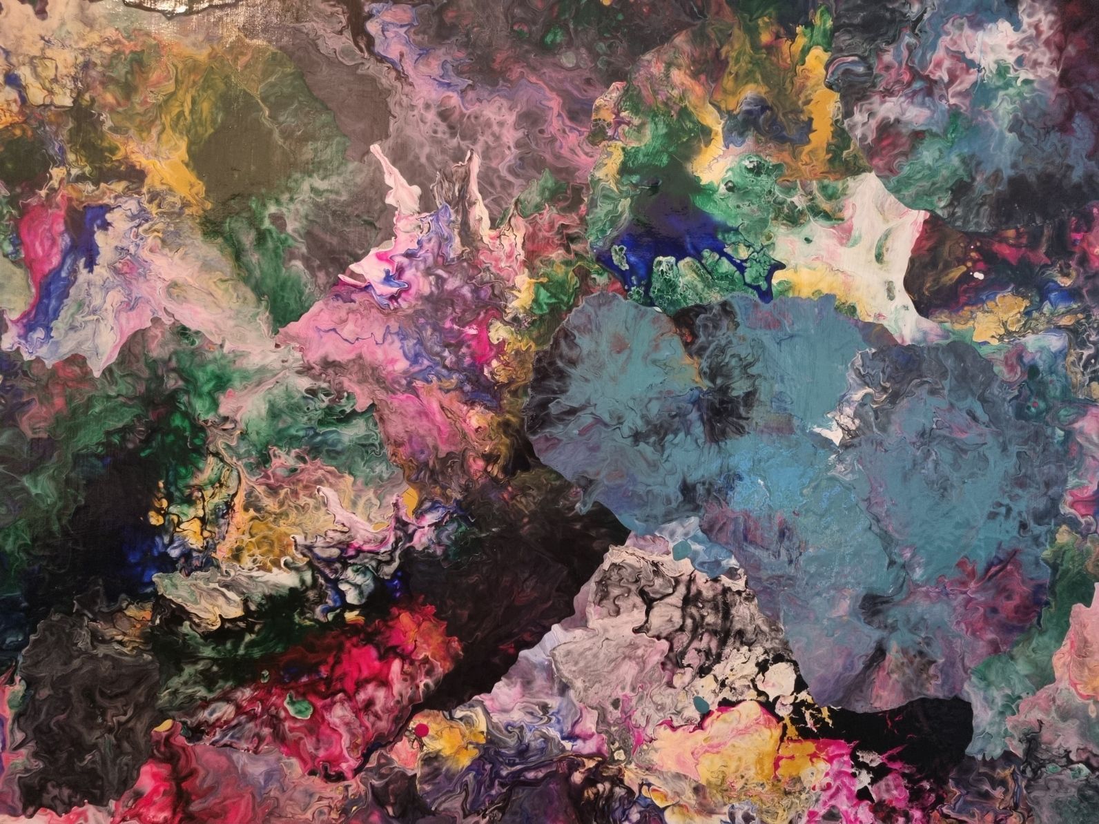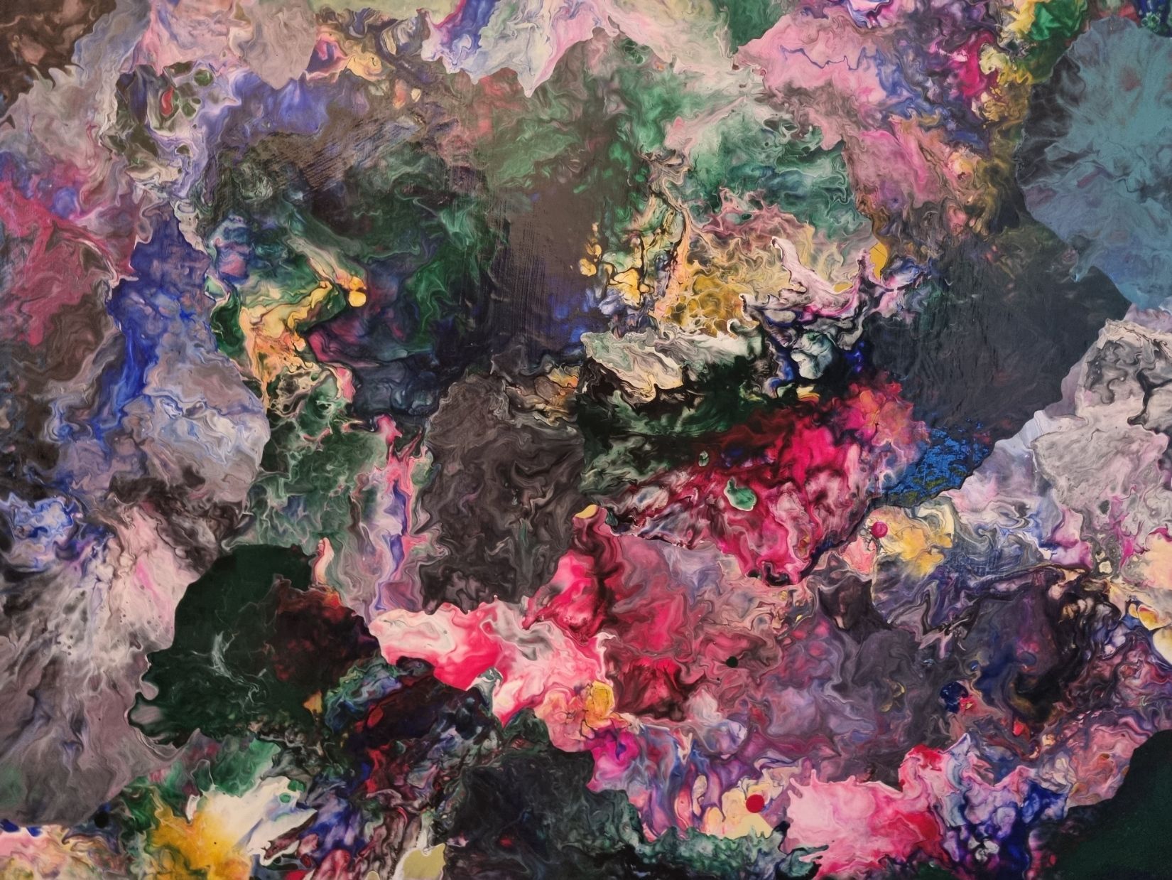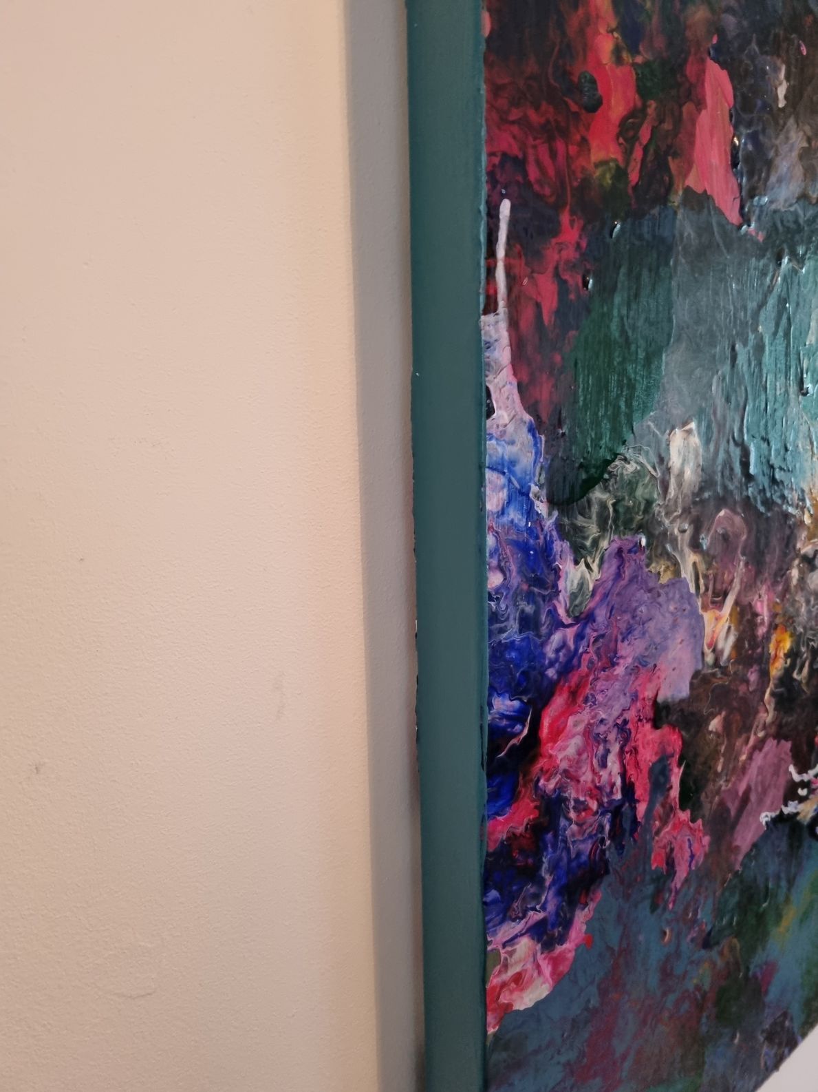 Mixed acrylic with clear gloss varnish finish. Reef is inspired by the Great Barrier Reef with its multi coloured corals and sea creatures swimming around. Although I haven’t had the good fortune to experienced this wonder of the natural world personally, in my mind this piece provides a tiny feel for what I imagine seeing such a landmark site beholds.
