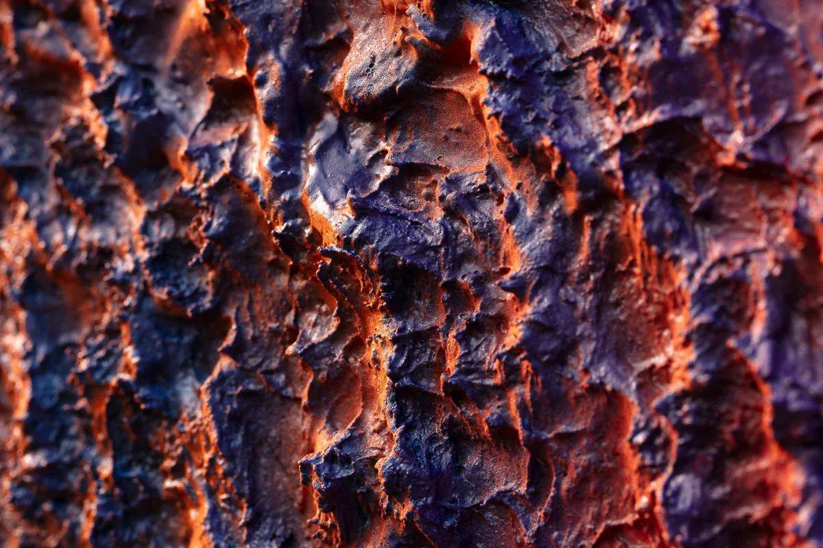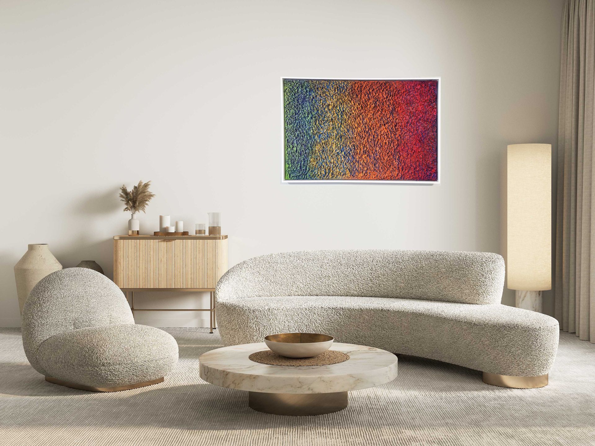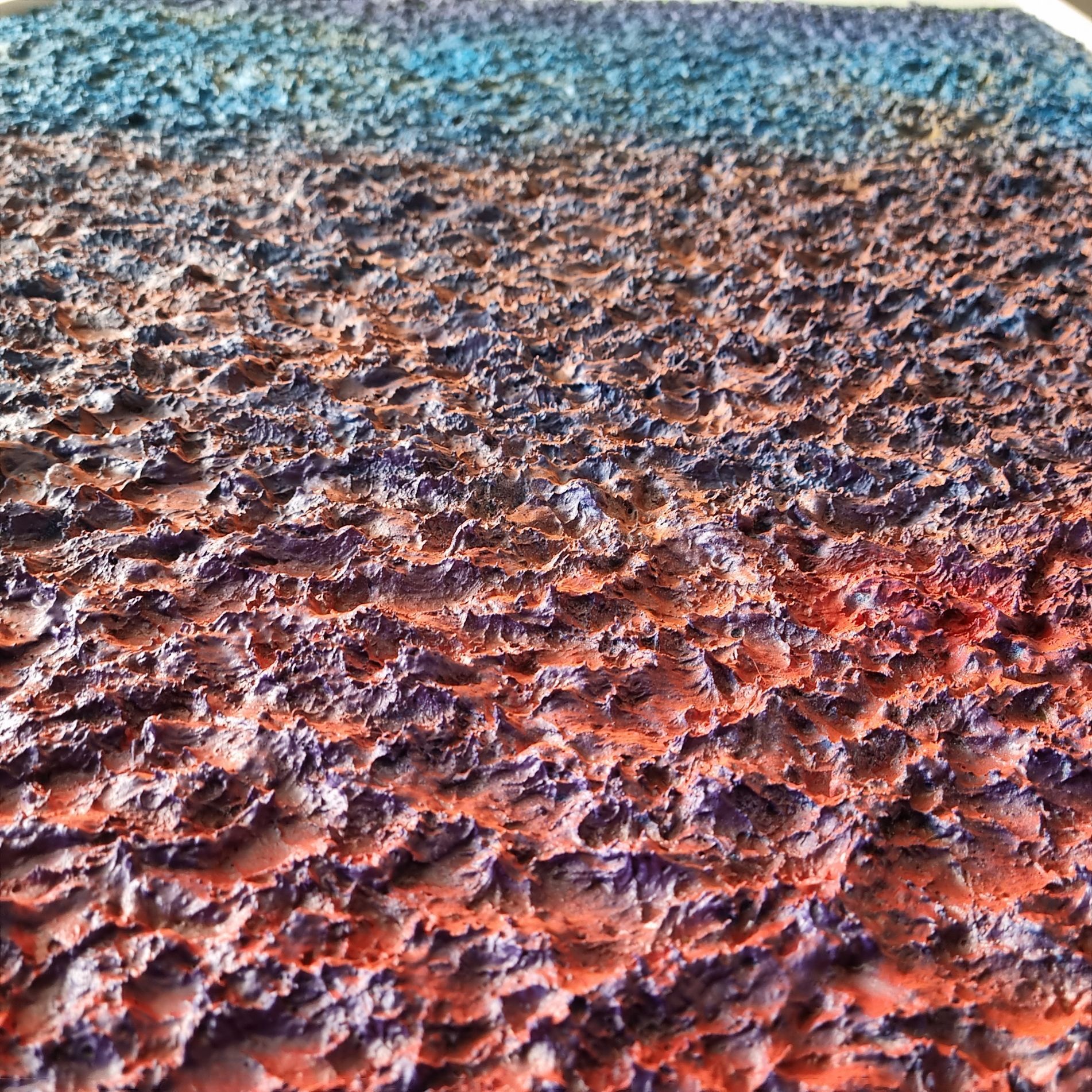 Spectrum is a heavily textured piece with deeply contoured base that forms a dramatic background on top of which the colours change from reds to blues from left to right. Overall weight 10kg.